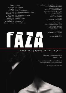 Η “Γάζα” μας, ταξιδεύει στα συντρίμμια του πολέμου προσπαθώντας να γεφυρώσει το χάσμα ανάμεσα στην ασφάλεια του "καναπέ" και τις ταραγμένες εκείνες γωνιές της γης που βιώνουν τη σκληρή και βίαιη πραγματικότητα του πολέμου. Η "Γάζα" μας, μιλάει για την αγάπη,για τη ζωή: την υπέροχη ζωή που χάθηκε, τη ζωή γεμάτη φόβο του παρόντος, την αβέβαιη ζωή του μέλλοντος,την διεκδίκηση της χαμένης ελπίδας και της ελευθερίας μέσα από αληθινές μαρτυρίες ανθρώπων που ζουν σε εμπόλεμη ζώνη. Τους ακούς να μιλούν και κάτι σου θυμίζουν... Είχαν ένα σπίτι, μια οικογένεια, μια αυλή, ένα αμάξι, ένα όνειρο, ένα μπλοκ με ζωγραφιές, που δεν υπάρχουν πια. Σήμερα αυτοί, αύριο ποιος;