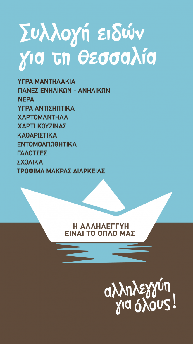 Συνέχιση της καμπάνιας αλληλεγγύης για τους πλημμυροπαθείς της Θεσσαλίας
